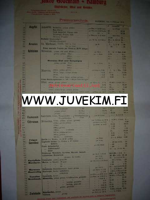 Jakob Godenrath Südfrüchte, Obst und Gemüse Hamburg/Hampuri 3.2.1912 -asiakirja