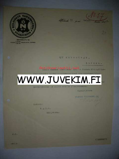 Helsingin Nahkakauppa Osakeyhtiö , 1922