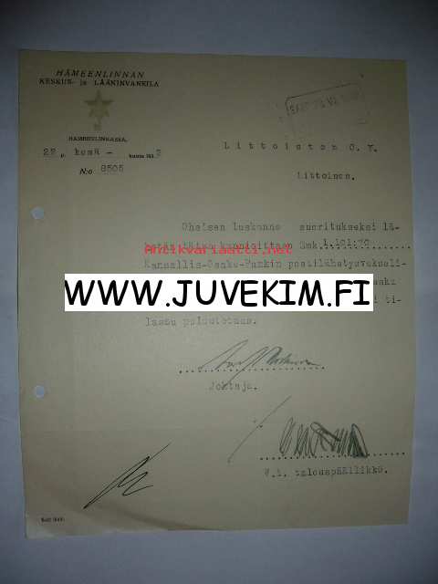 Hämeenlinnan Keskus- ja Lääninvankila Hämeenlinna 22.6.1932 -asiakirja