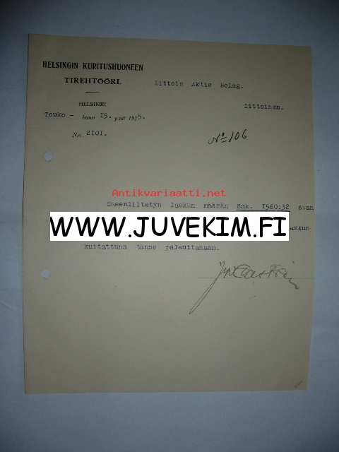 Helsingin Kuritushuone Tirehtööri Helsinki 15.5.1915 -asiakirja