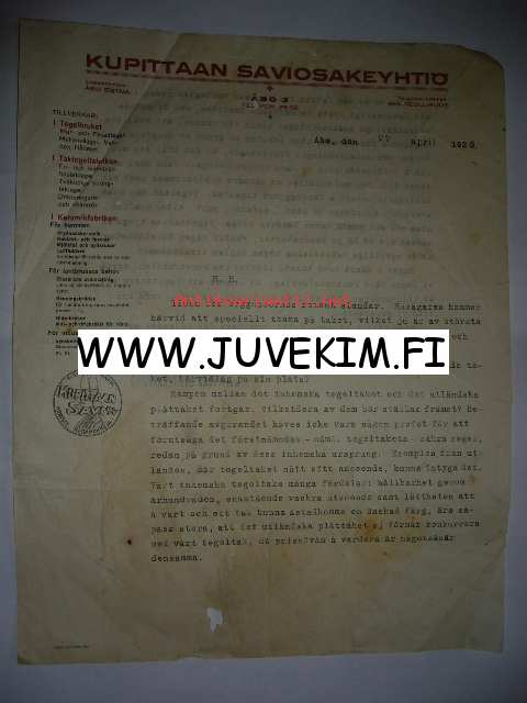 Kupittaan Saviosakeyhtiö Åbo/Turku 27.4.1928 -asiakirja