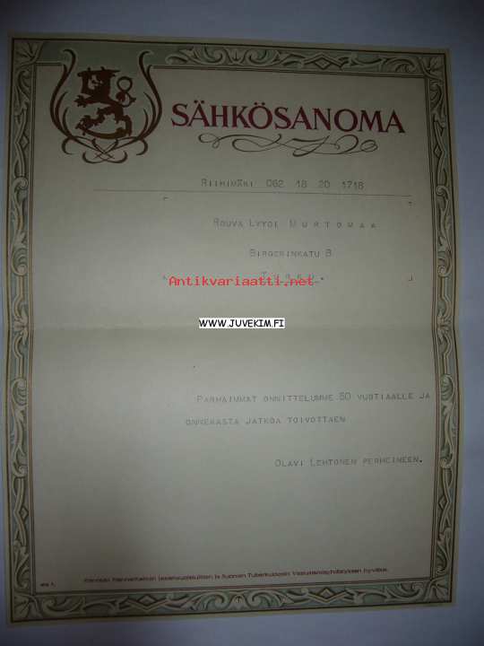 Lyydi Murtomaa Riihimäki -sähkösanoma