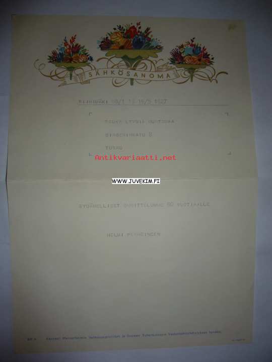 Lyydia Murtomaa Riihimäki -sähkösanoma