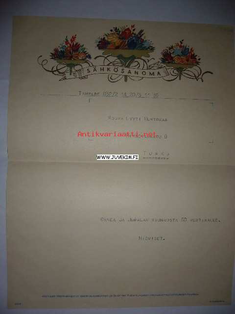 Rouva Lyyti Murtomaa Tampere -sähkösanoma