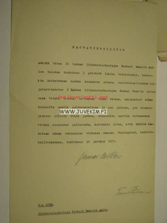 Herbert Emerik Aalto -Rautatiehallituksen määräyskirja 1935