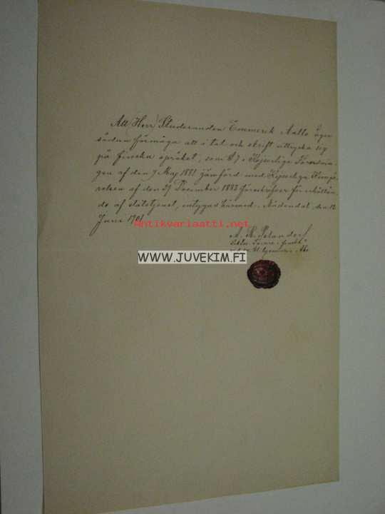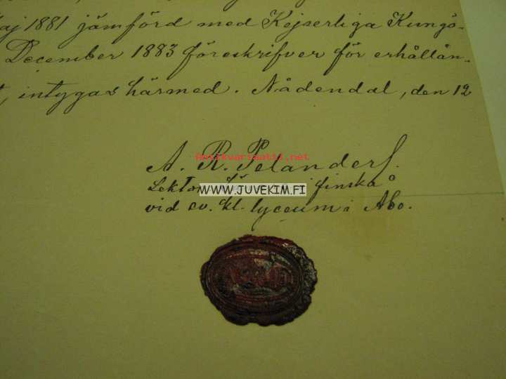 Herbert Emerik Aalto -todistus suomen kielen taidosta, Naantali 1901, A. R. Pelander