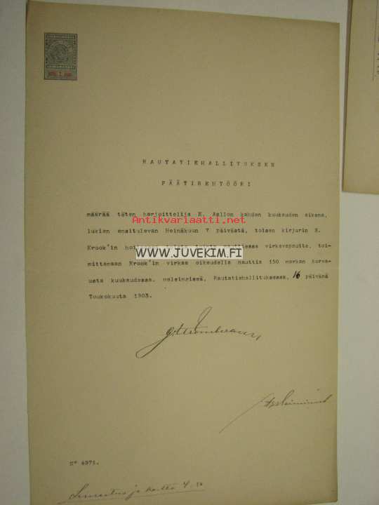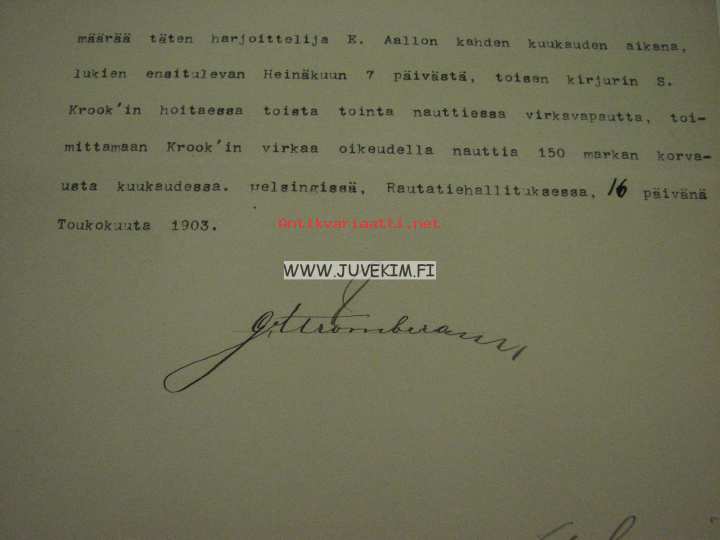 Herbert Emerik Aalto -Suomen Valtion Rautatiet, määräyskirja 1903