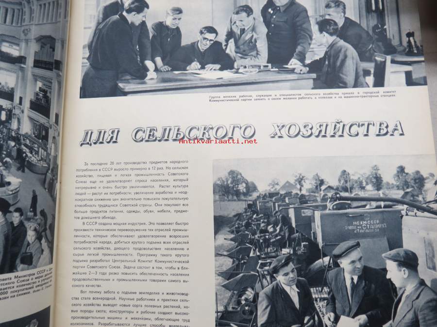Советский Союз, декабрь 1953 - "Neuvostoliitto, joulukuu 1953" -propagandalehti, venäjänkielinen, suomenkieliset kuvaselostukset erillisliitteenä
