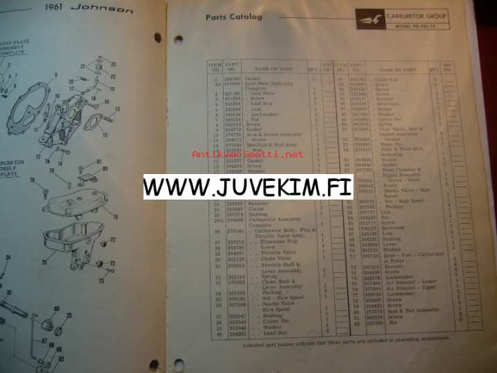 Johnson 1961 Sea horse models FD-FDL-15 -parts catalog