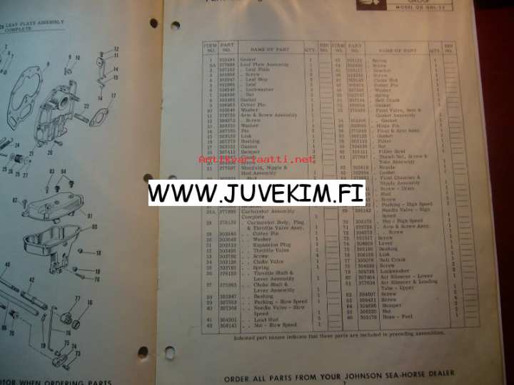 Johnson 1961 Sea horse models QD-QDL-22 -parts catalog