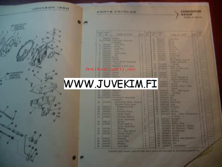 Johnson 1960 Sea horse models FD-FDL14 -parts catalog