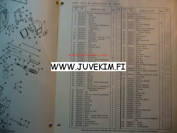 Johnson 1960 Sea horse models RD-RDL22 -parts catalog