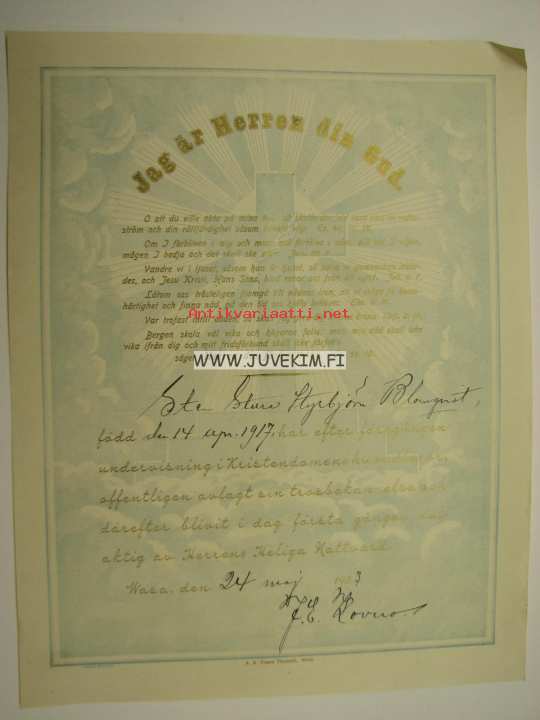 Sten Sture Styrbjörn Blomqvist 1917 -rippikoulutodistus