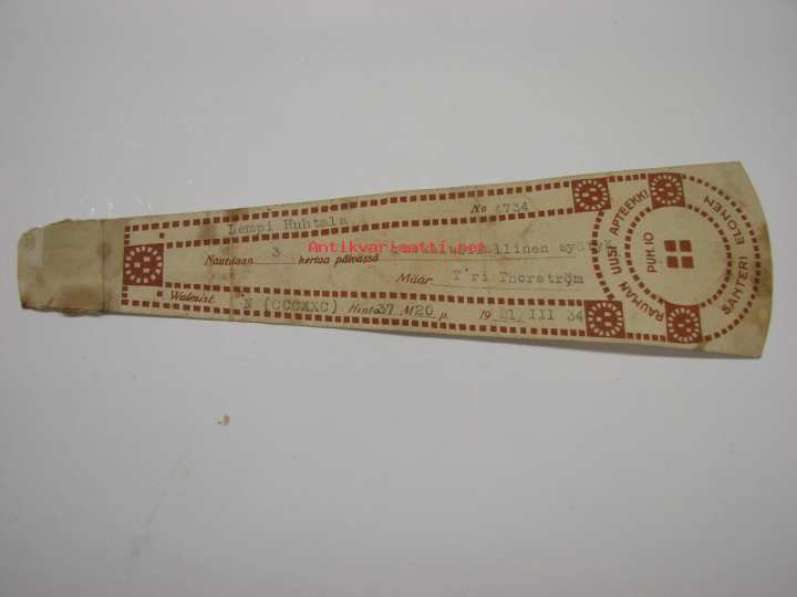 Rauman Uusi Apteekki 1934 -signatuuri