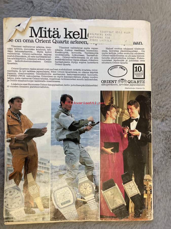 | Saatavilla | 3 kpl | | Julkaisuvuosi | 1985 | | Sivuja | 96 | | Kunto | K2 | | Sidonta/painoasu | Lehti | | Kielet | Suomi |