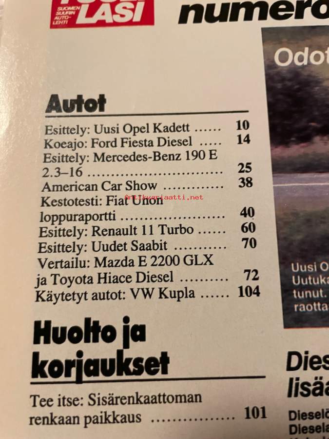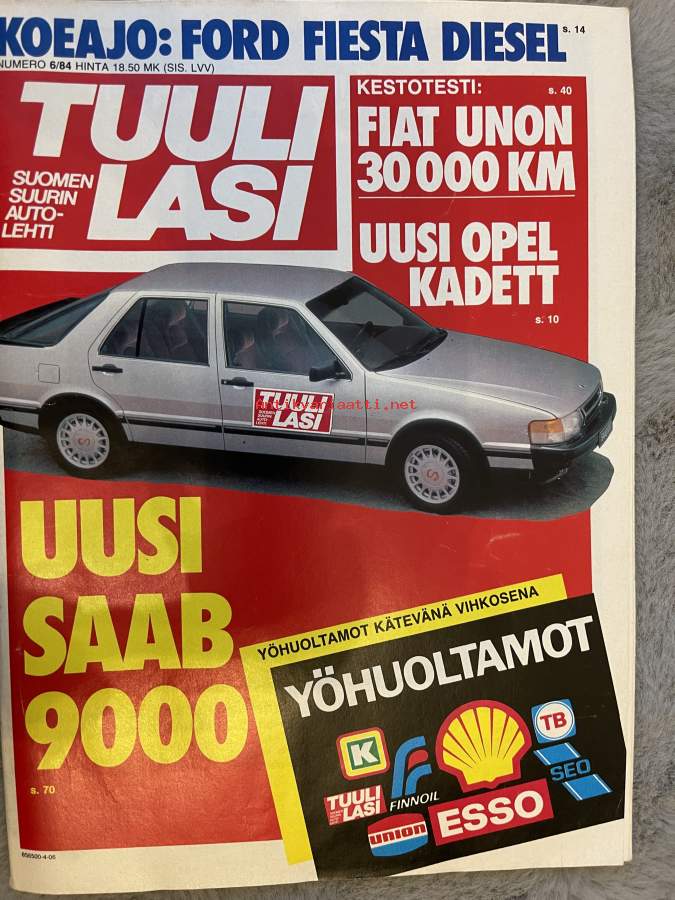 Tuulilasi 1984 nr 6 - Kestotesti: Fiat Unon 30 000 km, Uusi Opel Kadett, Uusi Saab 9000, ym.