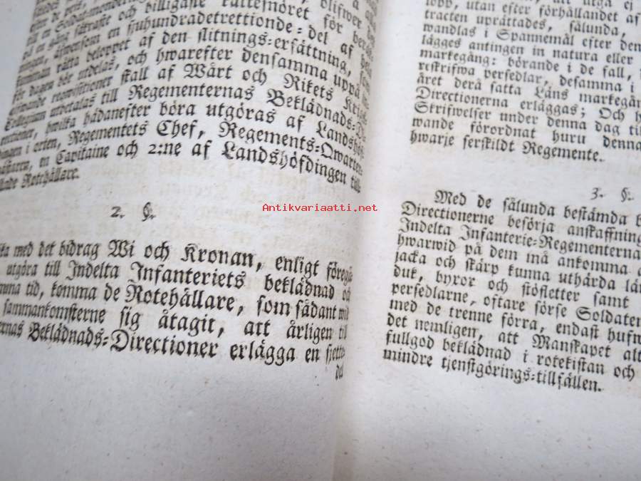Kongl. Majestets... Förordning Angående Indelta Infanteriets Beklädnad, Stockholm, 1820 -asetus / määräys