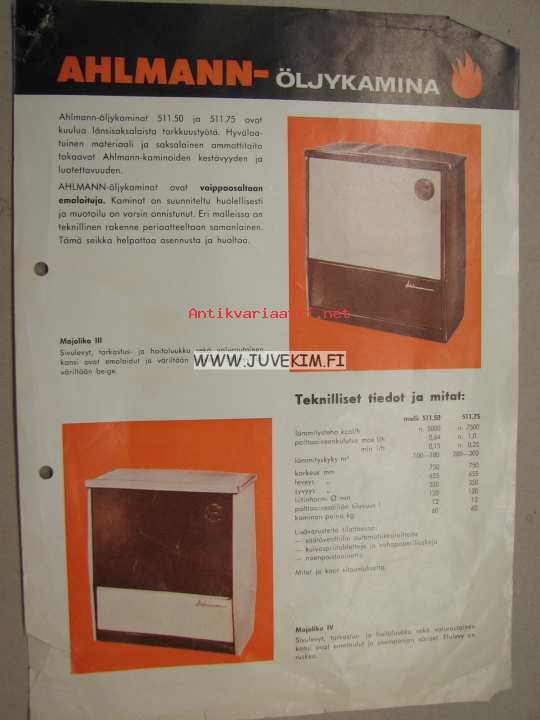 Ahlmann-öljykamiina -myyntiesite
