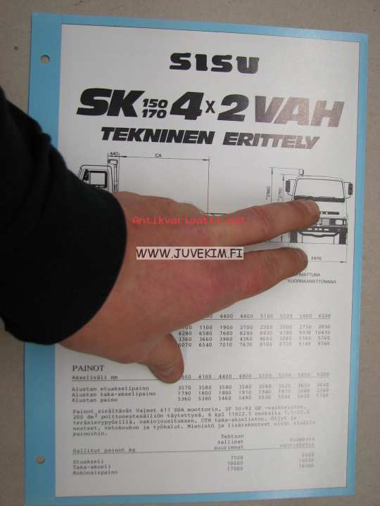 Sisu SK 150/170 4x2 VAH tekninen erittely -myyntiesite
