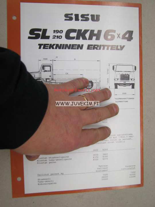 Sisu SL 190/210 CKH 6x4 tekninen erittely -myyntiesite
