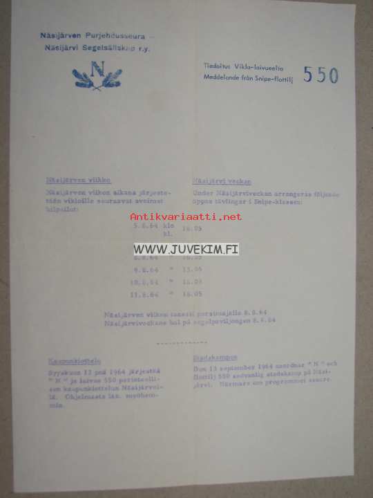 Näsijärven Purjehdusseura - tiedoitus Vikla-laivueelta 550