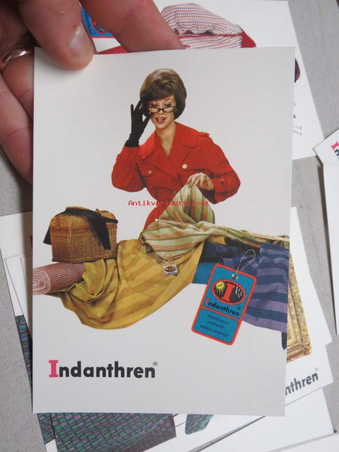 10 x 15 cm mainospostikortteja. "For a hundred years, the name Indanthren® has been synonymous with high-quality, heavy-duty