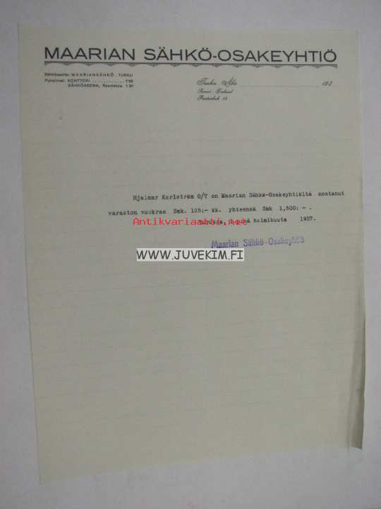 Maarian Sähkö-osakeyhtiö Turku -asiakirja
