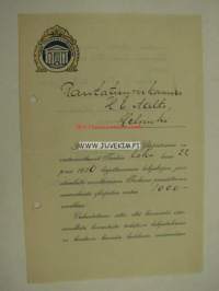 Turun Suomalainen Yliopistoseura 1920 -lahjakirjan vastaanottoilmoitus