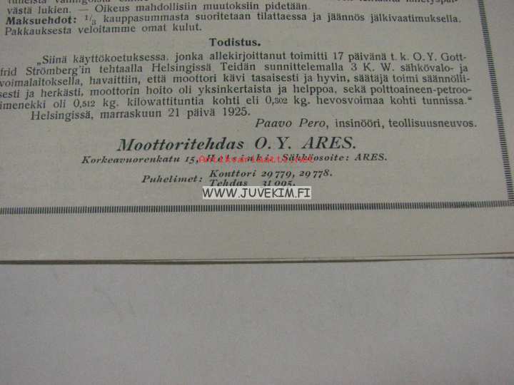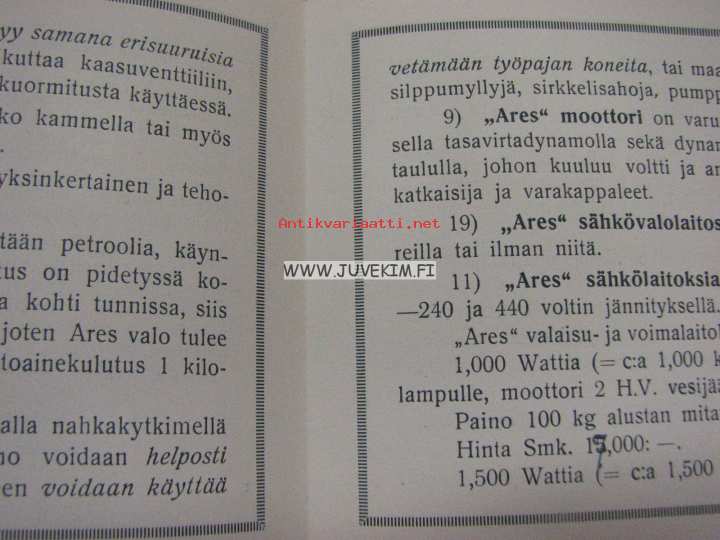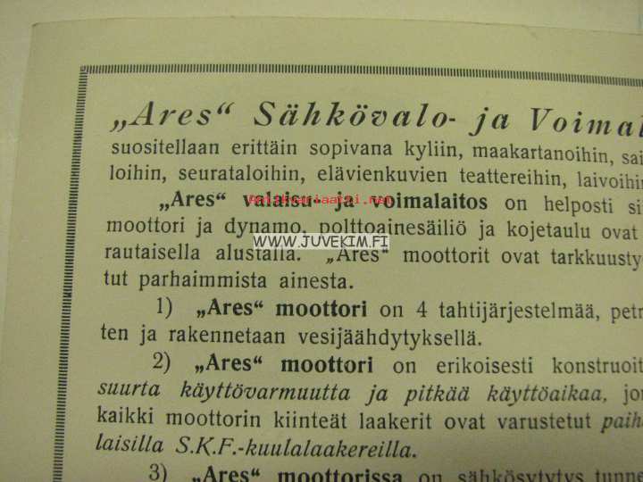 Ares sähkövalo- ja voimalaitos -myyntiesite