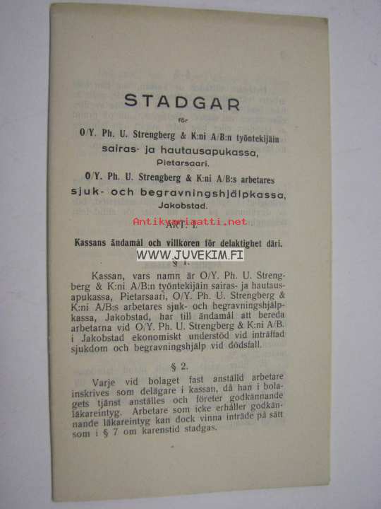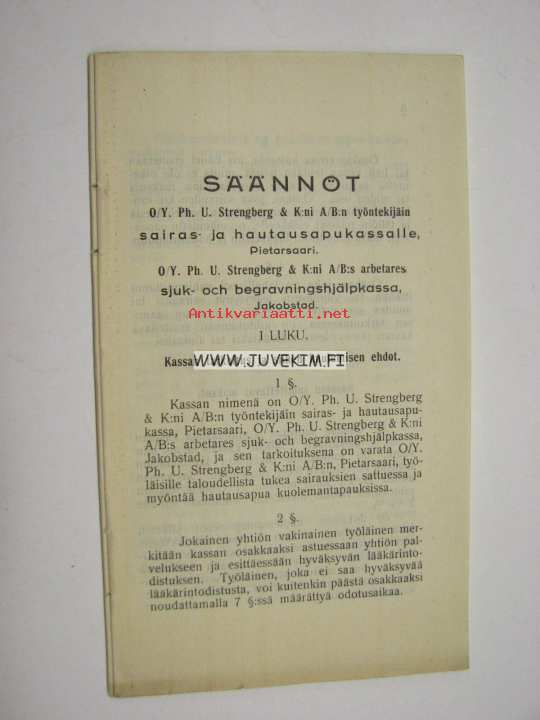 Säännöt OY Ph. U. Strengberg & K:ni A/B:n työntekijäin sairas- ja hautausapukassalle