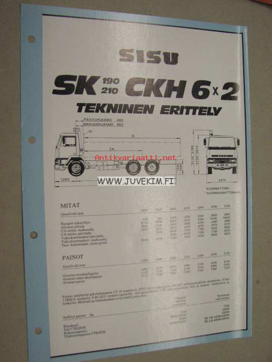 Sisu SK 190 210 CKH 6X2 tekninen erittely -myyntiesite