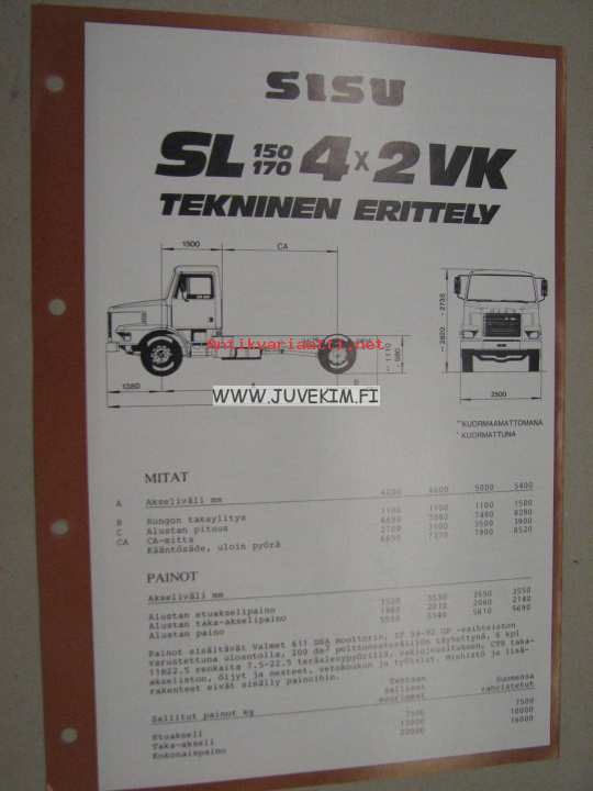 Sisu SL 150 170 4X2 VK tekninen erittely -myyntiesite