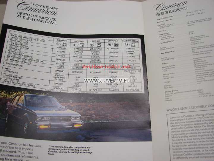 Cadillac Cimarron 1982 -myyntiesite