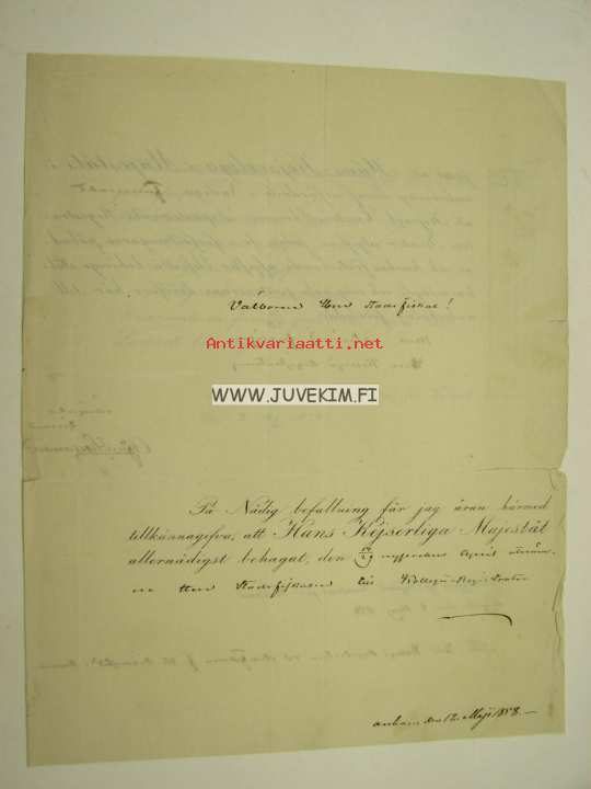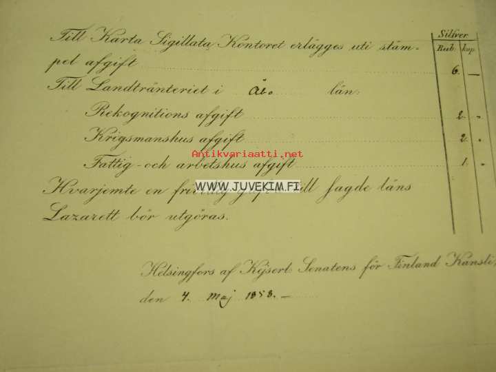 Välborne Herr Stadsfiskal F.W. Ridd...? i Raumo (Rauma) -asiakirja v. 1858
