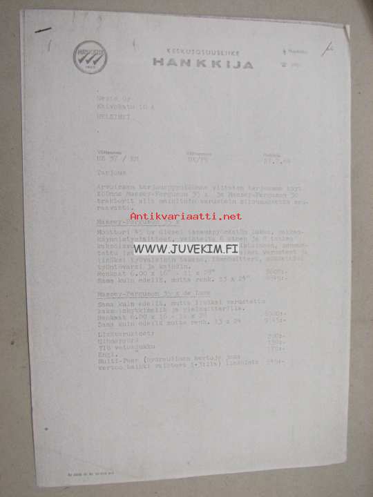 Hankkija Oy / Neste Oy traktoritarjousasiakirjat (kopio) Massey Ferguson 35X, 30