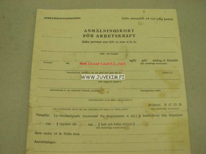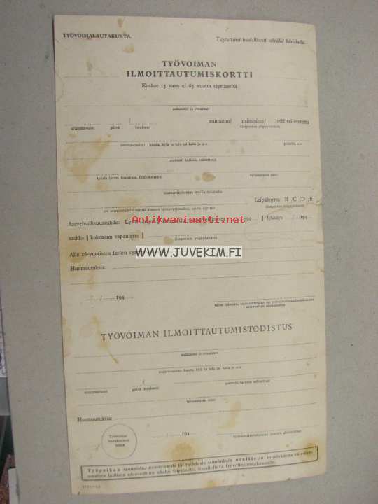 Työvoiman ilmoittautumiskortti ja todistus
