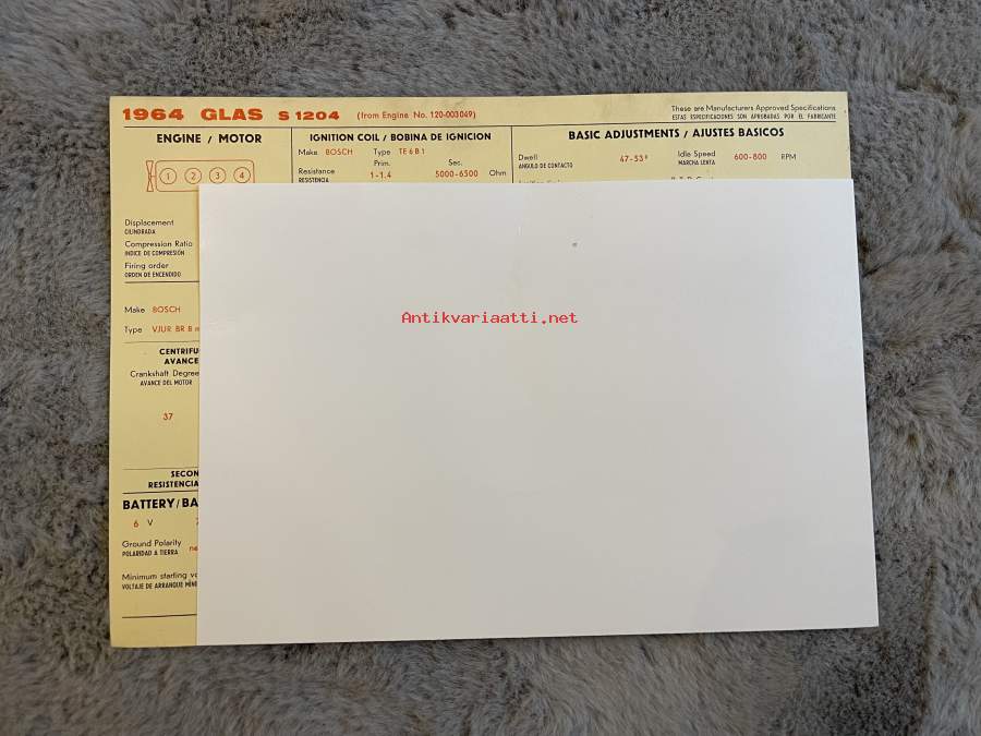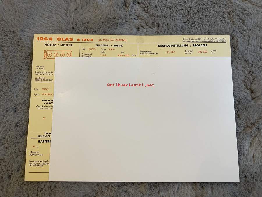 Glas S 1204 1964 - säätöarvokortti / säätöarvot, monikielinen -technical specifications, multilingual