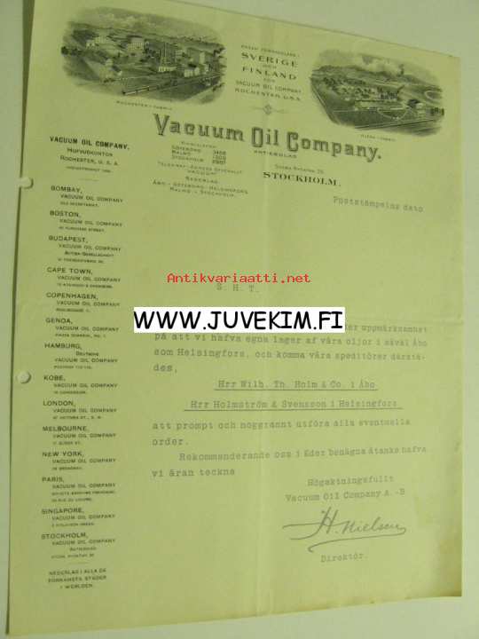 Vacuum Oil Company, Stockholm -asiakirja