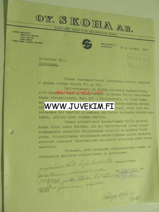 Oy Skoha Ab, Helsinki 19.2.1941 -asiakirja