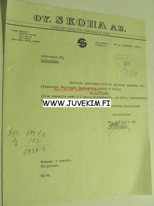 Oy Skoha Ab, Helsinki 22.2.1941 -asiakirja