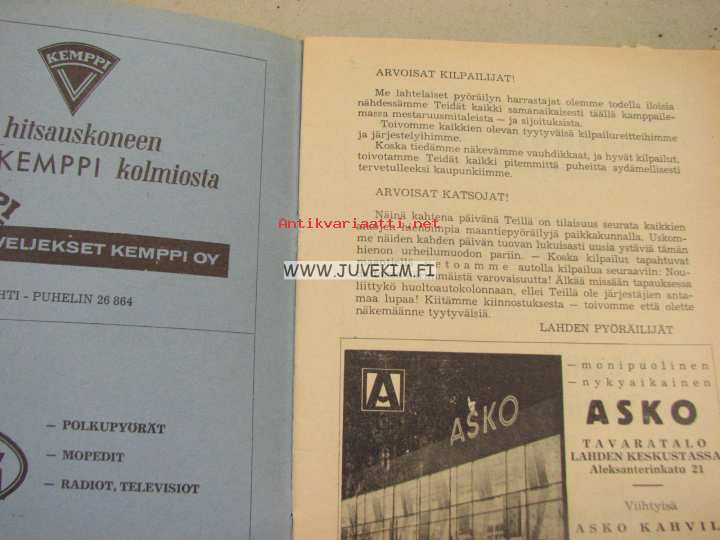 SM maantiepyöräilyt ja Olympiakatsastukset Lahdessa 1964 -käsiohjelma