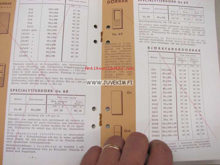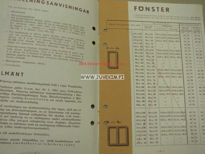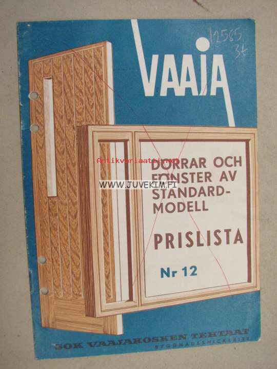 Vaaja dörrar och fönster Prislista nr 12 1963 -hinnasto