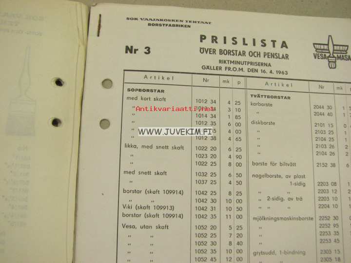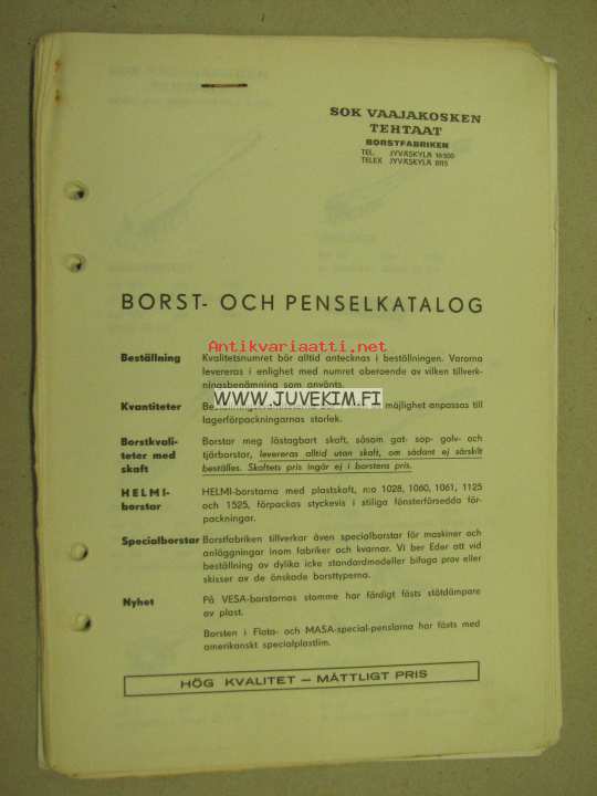 SOK Vaajakosken Tehtaat Borst- och penselkatalog - kuvasto ja hinnasto