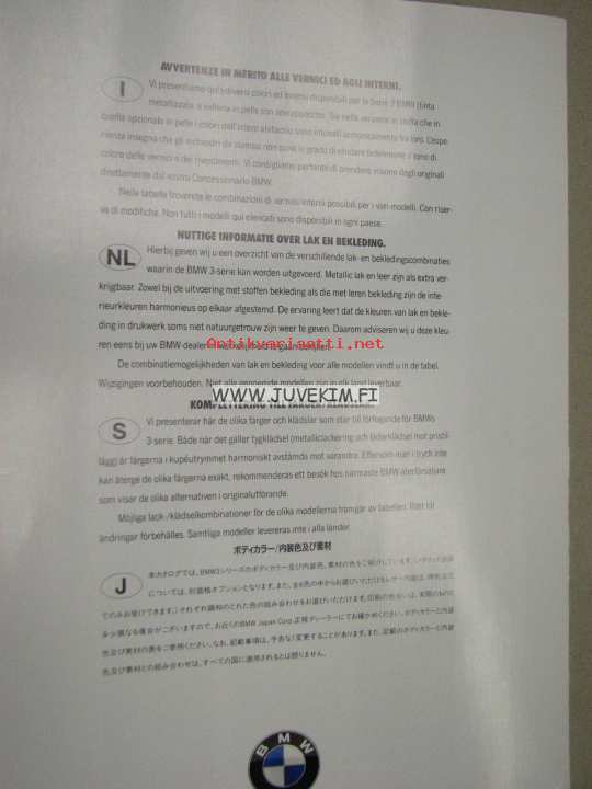 BMW Farben und polster 3er-reihe 1992 värit ja verhoilut -myyntiesite
