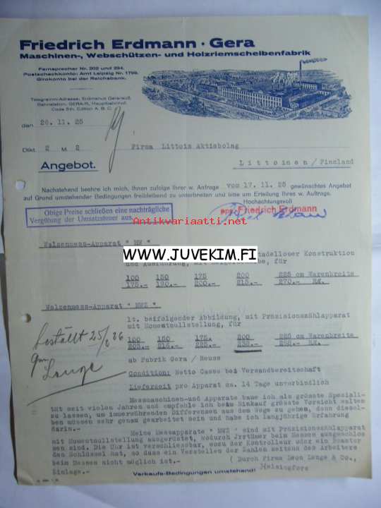 Friedrich Erdmann Gera Leipzig 26.11.1925 -asiakirja