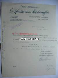 Finska Aktiebolaget G. Hartmans Maskinaffär Helsingfors 9.7.1925 -asiakirja