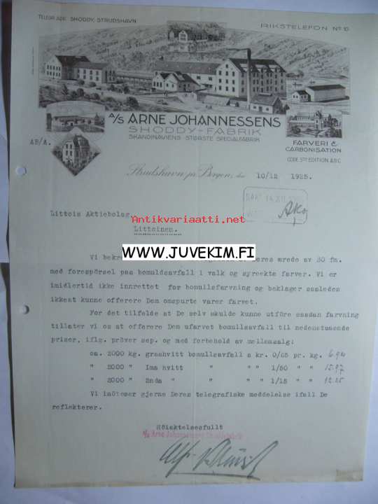 A/S Arne Johannessens Bergen 10.12.1925 -asiakirja