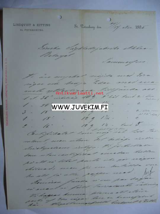 Lindqvist & Zitting St. Petersburg 29.12.1895 -asiakirja