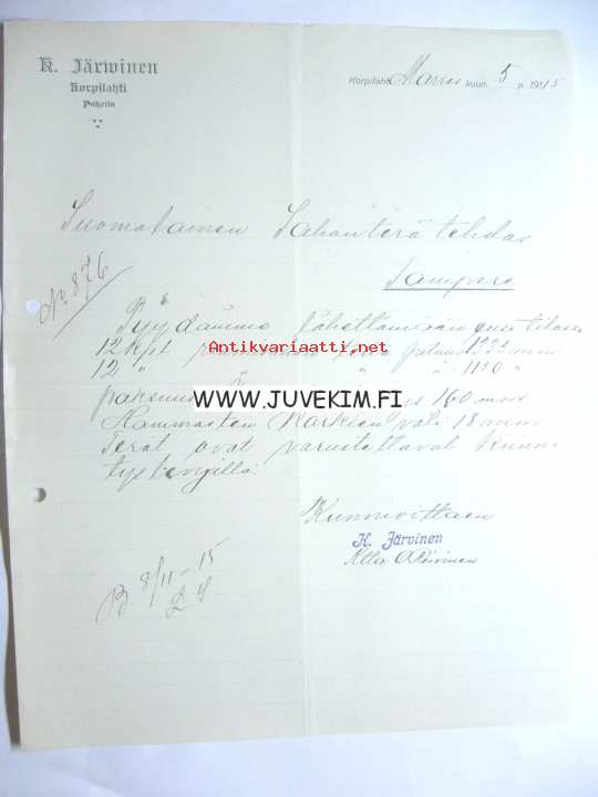 K. Järvinen Korpilahti, 1915