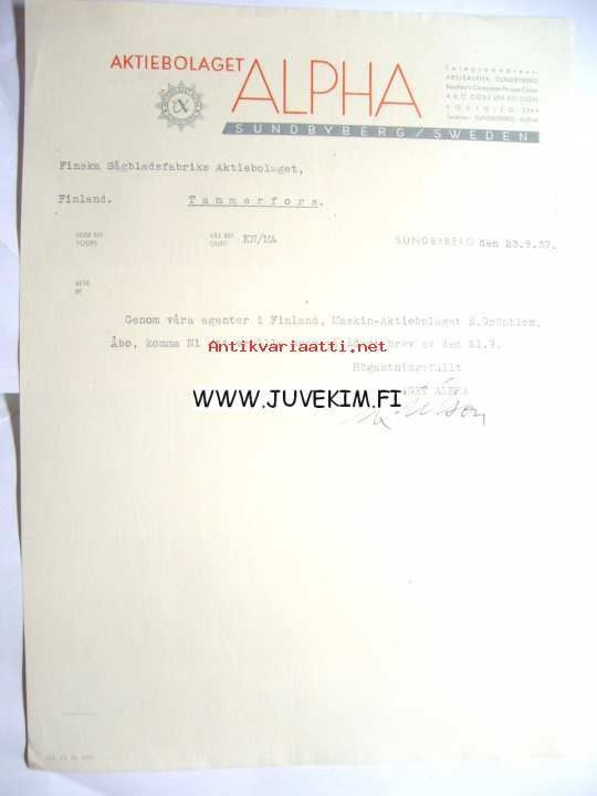 Aktiebolaget Alpha Sundbyberg 23.9.1937 -asiakirja